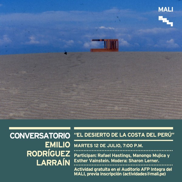 En este segundo conversatorio en el marco de la exhibición Emilio Rodríguez Larraín se discutirá sobre el tópico del desierto de la costa del Perú, y el lugar que este ha tenido en el imaginario de Rodríguez Larraín y de otros artistas contemporáneos.