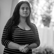Artista urbana y poeta visual. Estudió literatura en la U.N.M.S.M. Ha publicado el libro-origami “Papiroflexia- horizontencerrado” (2008) y, en edición artesanal, Broza (2012), además de un libro de poemas ilustrados titulado “Insomnio” (2013). Actualmente co-dirige junto al historietista Fernando Laguna el proyecto de “La Casa editores”, plataforma desde la cual publica de manera artesanal historieta y poesía.